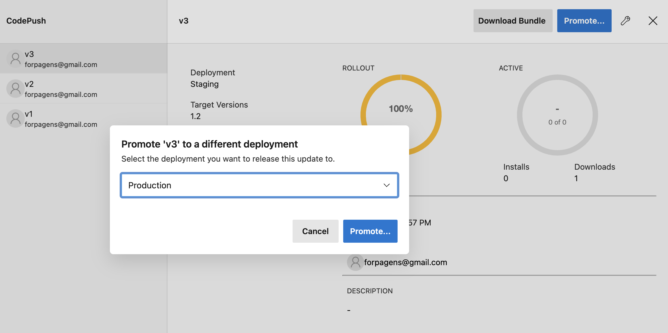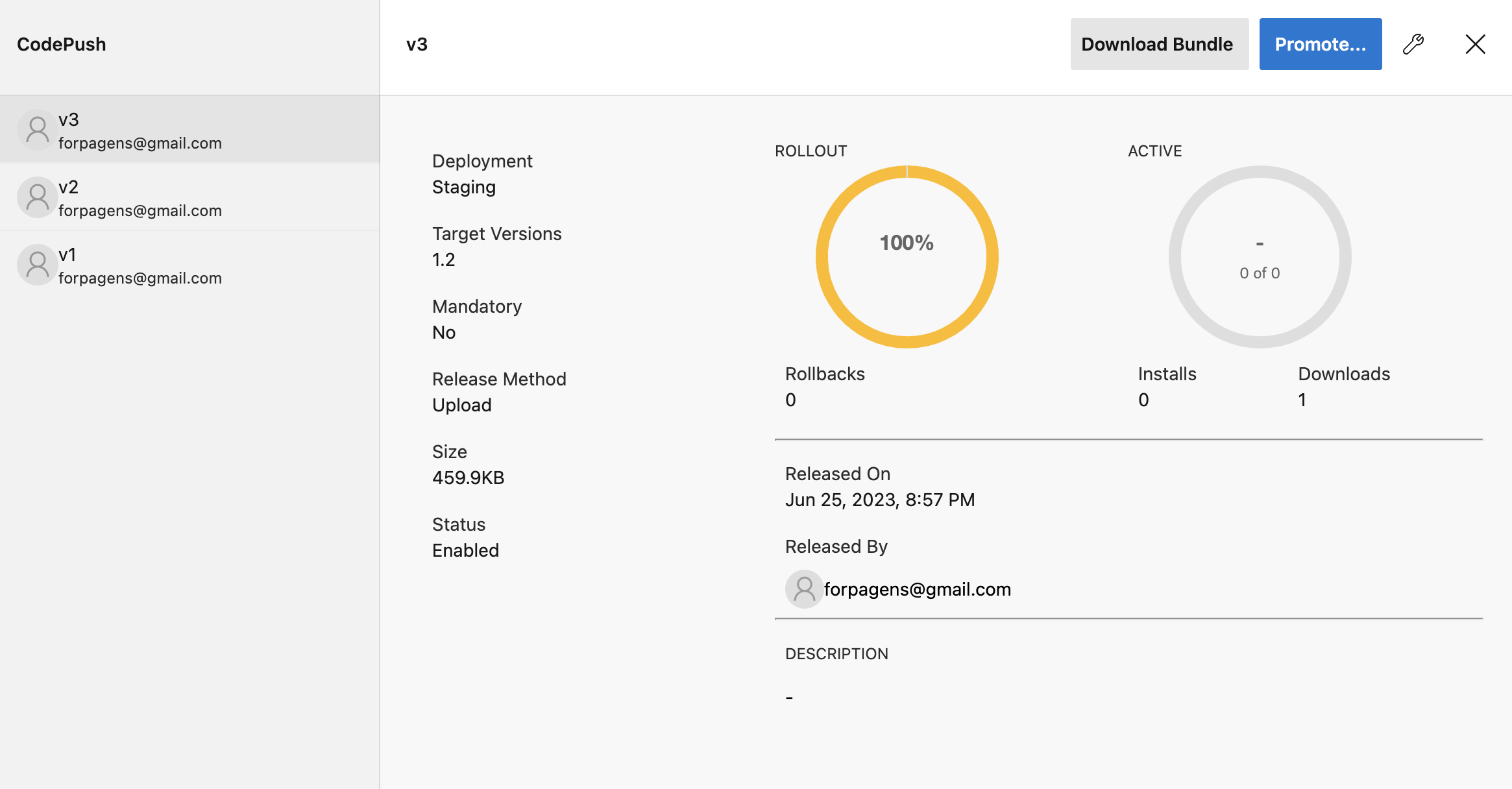 새 release를 production development로 promote 시켜주어야 합니다. promote하고자 하는 release를 클릭하면 아래의 화면을 확인할 수 있습니다.