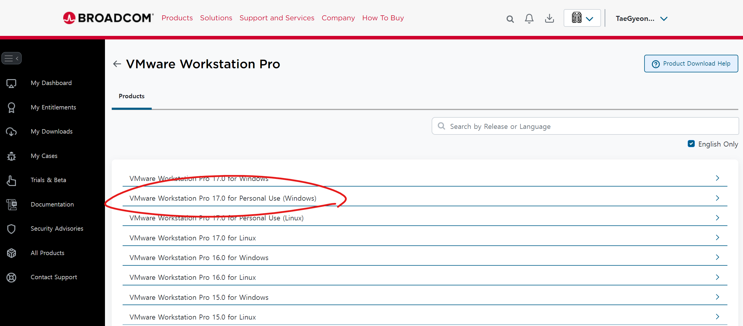 아래 링크를 통해 workstation pro를 다운로드 해주세요.