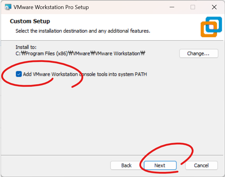 vmware workstation console tool 은 반드시 설치해야 하는 것은 아니지만 가상화 관리를 위해 설치를 권장드립니다. 체크 후 Next 를 클릭해 주세요.