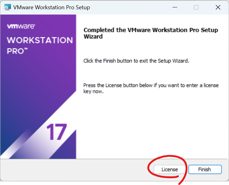 라이센스 키를 입력해야 합니다. 라이센스 키를 찾아 입력해 주세요. 구글에 vmware workstation license key 를 검색하면 쉽게 찾을 수 있습니다.