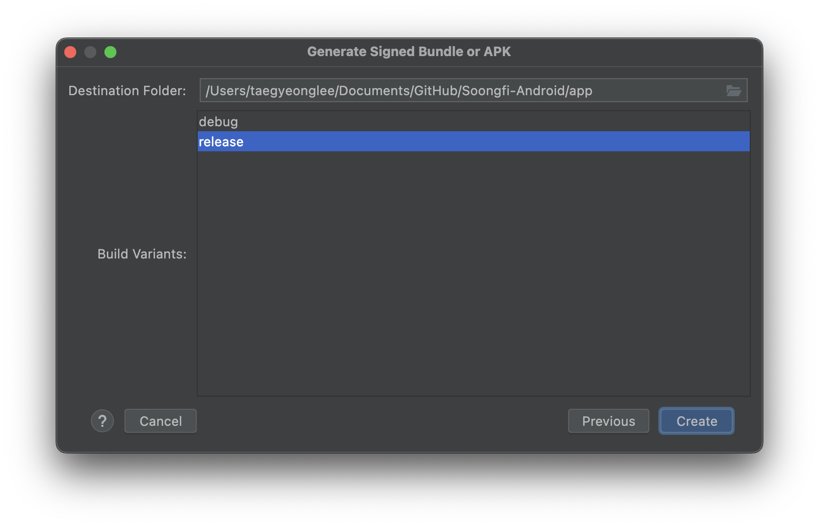 release를 선택 후 Create 해주세요.